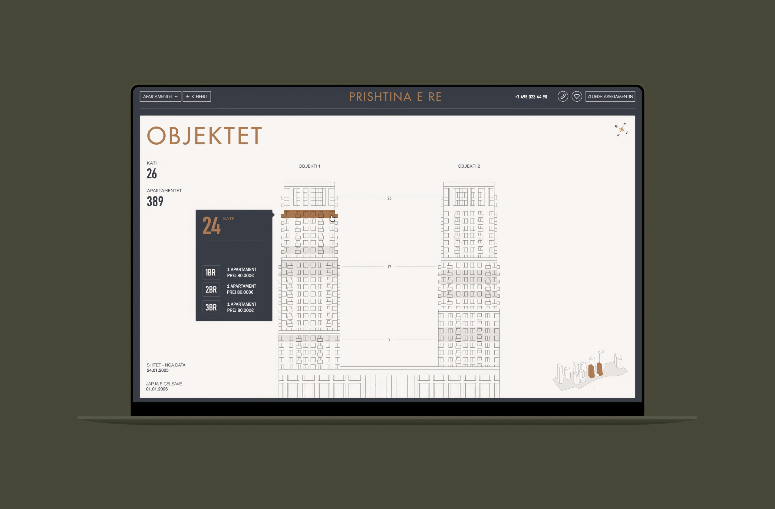 Marubi Marketing’s interactive platform makes it easy for buyers to explore real estate properties from anywhere, at any time. Designed for developers and property managers, this platform allows clients to view apartments and building complexes with just a few clicks, giving them all the essential information without needing an in-person visit. With features like 2D interactive renderings, virtual walkthroughs, and real-time unit availability, buyers can explore each property in detail, gaining insights into layouts, room sizes, and overall design. Filtering options let clients search by specific needs, such as floor level, price, or number of bedrooms, simplifying the search process.